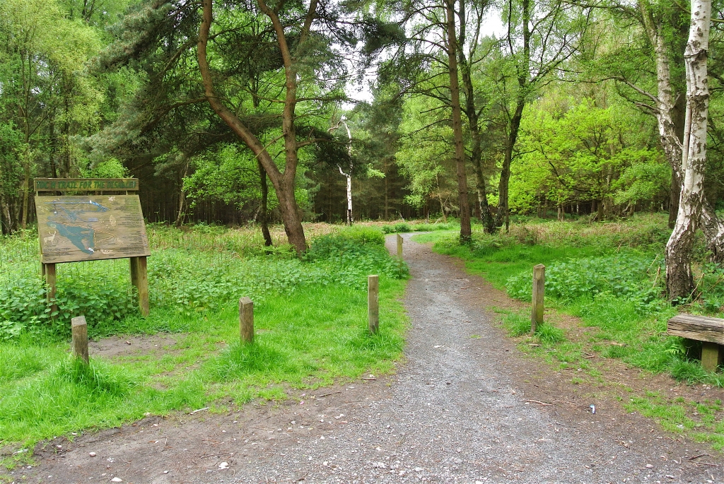Once on the car park, take the path next to the wooden notice, on the left hand side of the car park.