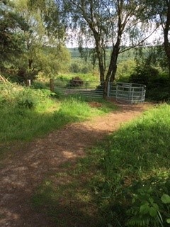 until it turns into a single path with the woods on your right. If you start walking down a steep hill you have gone to far.
